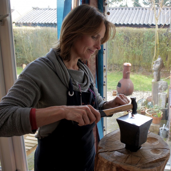 Ze hakt beelden uit hout en steen, schildert en tekent vele portretten van mensen