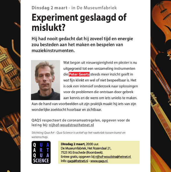 Op dinsdag 1 Maart is (was) er de lezing van Peter Geerts over en met zijn muziekinstrumenten.