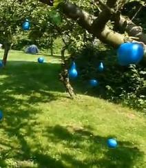 Hanni Stolker en Jeanine Wubbels stellen tentoon in de boomgaard bij kwekerij Trudeke Jansen